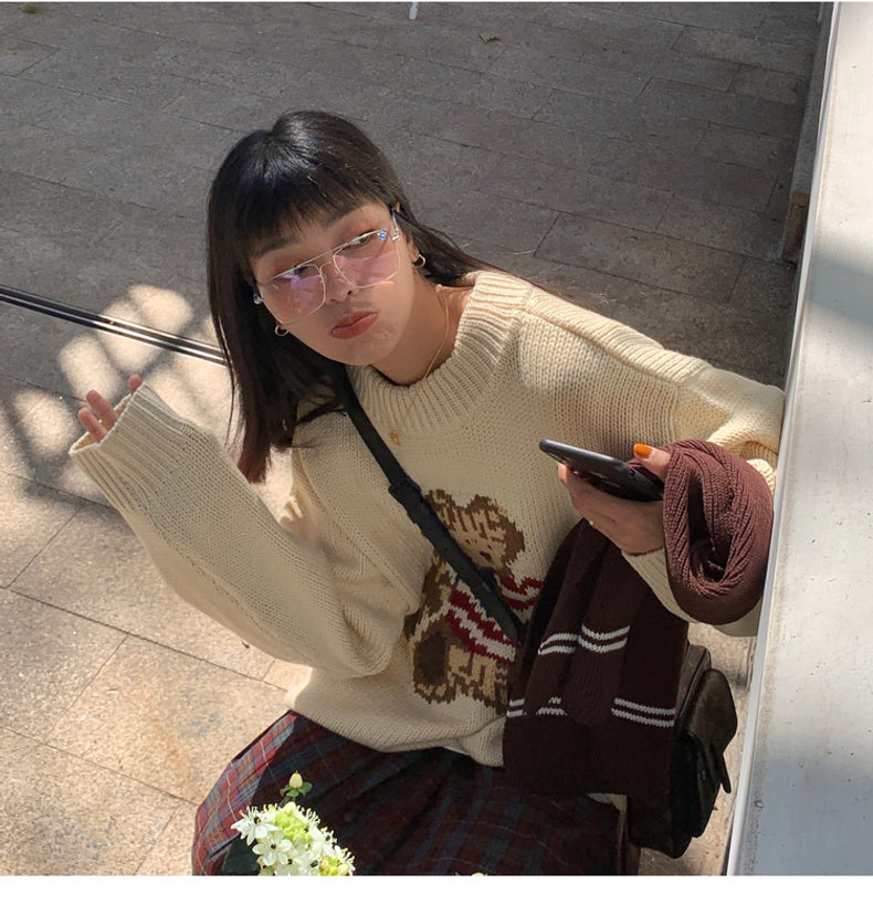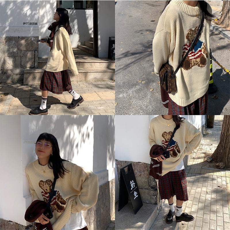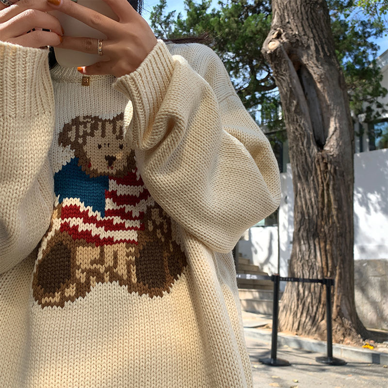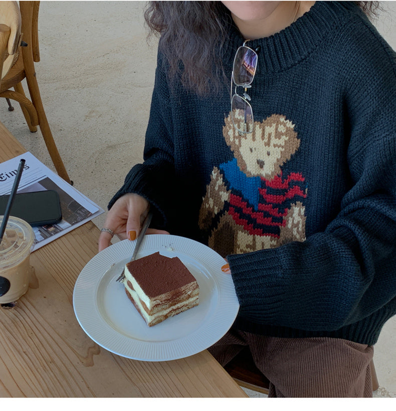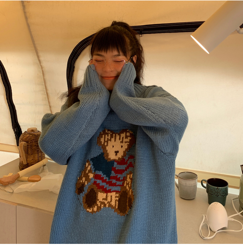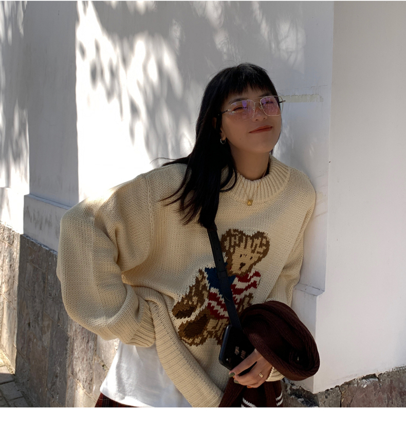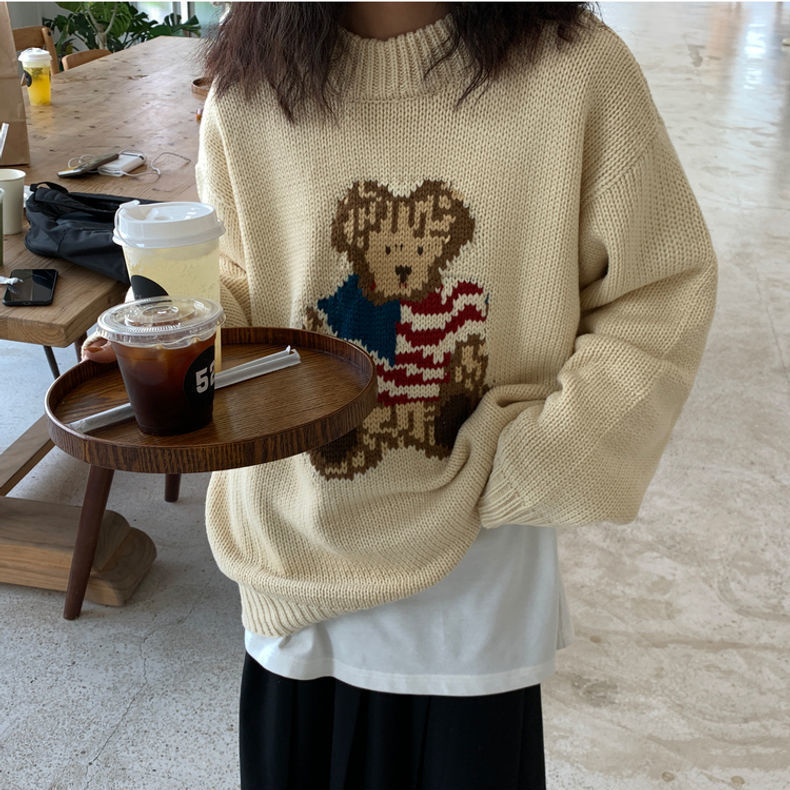 Bear sweater loose lazy style women's sweater