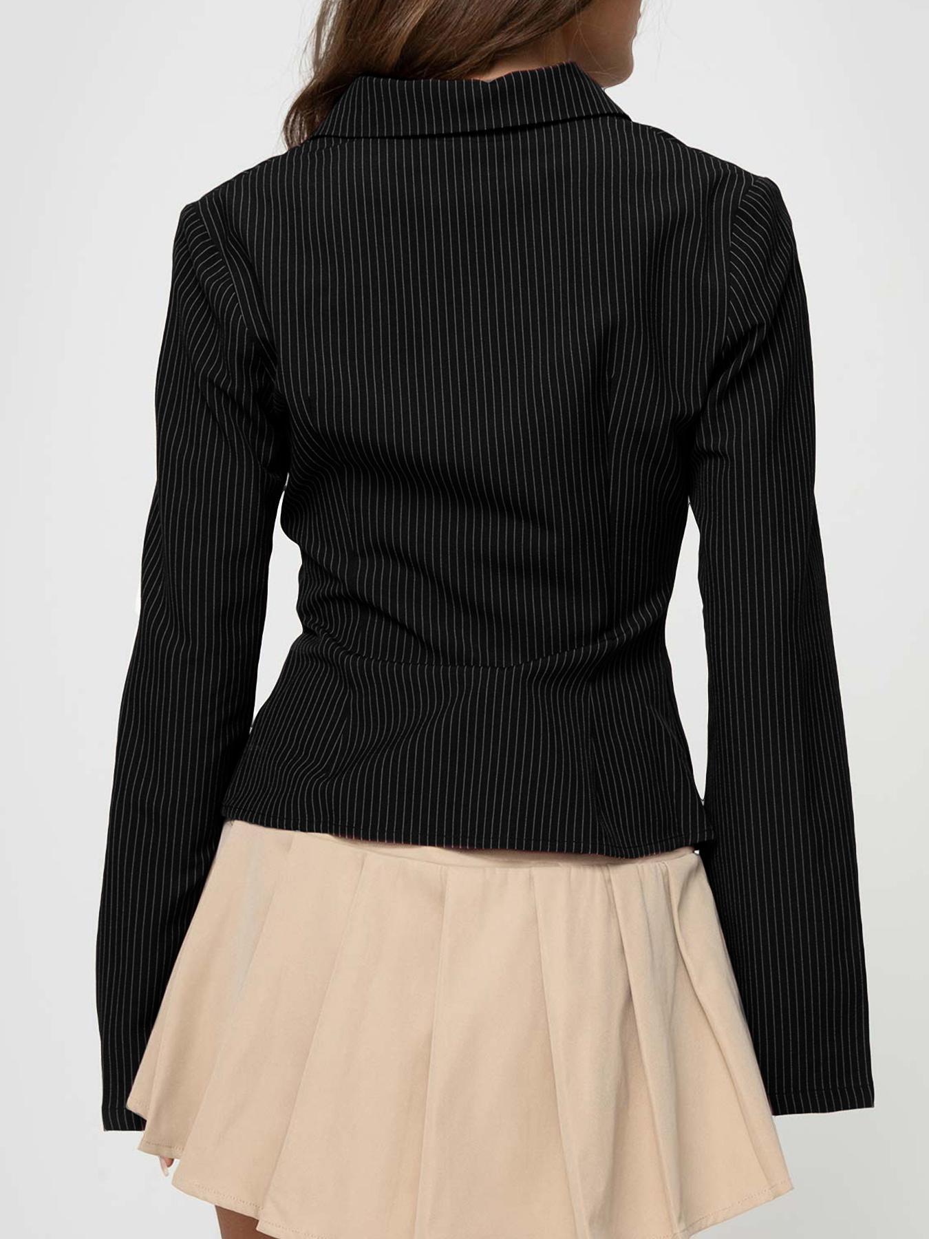 Lapel Breasted Cardigan Long Sleeve Shirt Slim Striped Top
