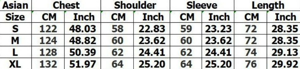 1. Asian sizes are 1 to 2 sizes smaller than European and American people. Choose the larger size if your size between two sizes. Please allow 2-3cm differences due to manual measurement. 2. Please check the size chart carefully before you buy the item, if you don't know how to choose size, please contact our customer service. 3.As you know, the different computers display colors differently, the color of the actual item may vary slightly from the following images.