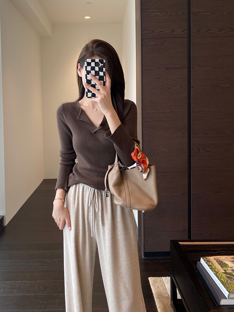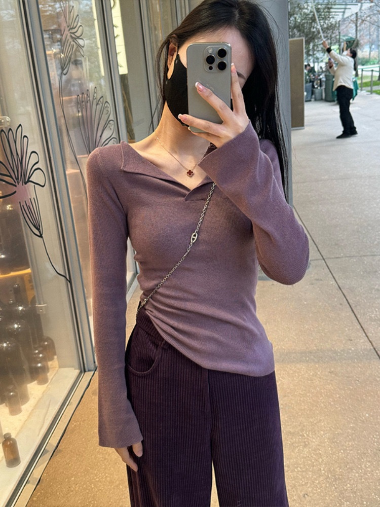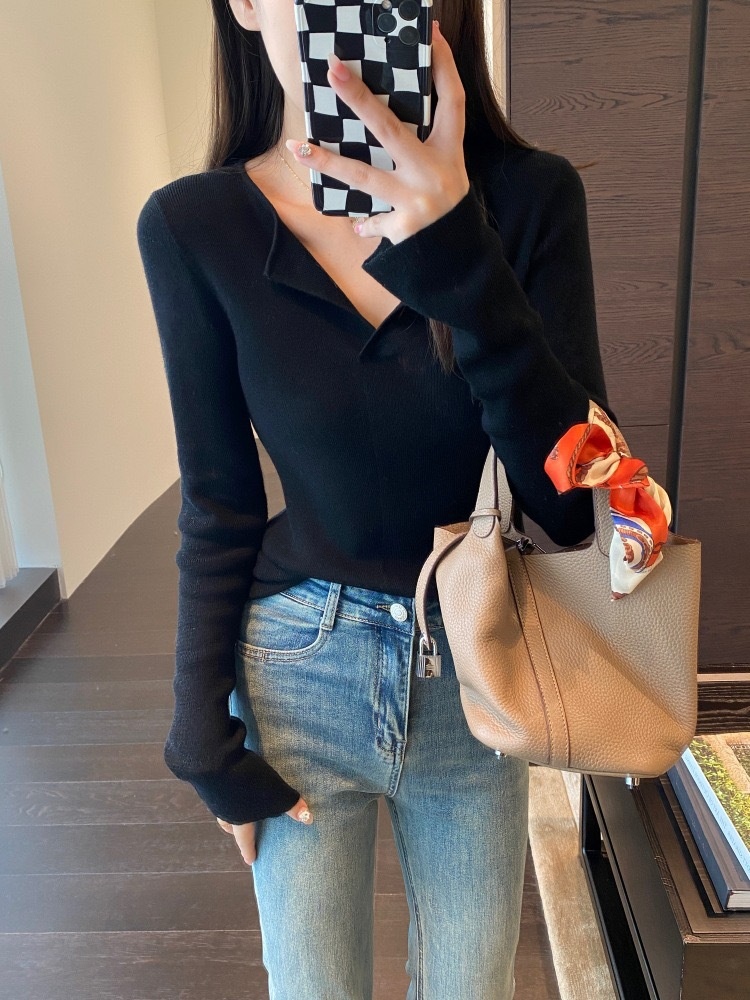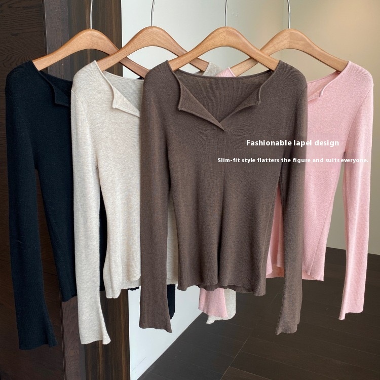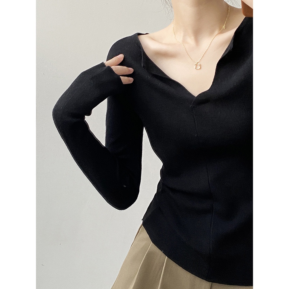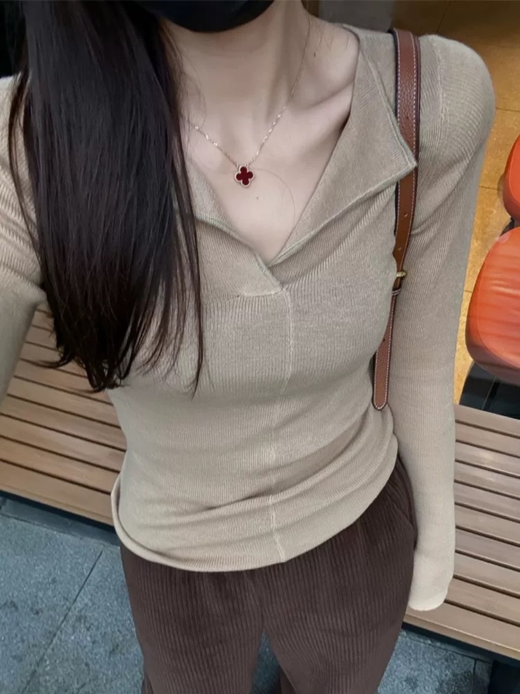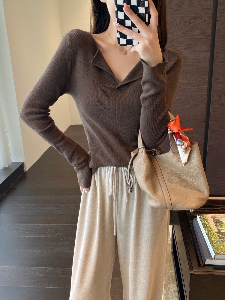 V-neck Long Sleeve Bottoming Slim-fit Flattering Sweater Knitwear