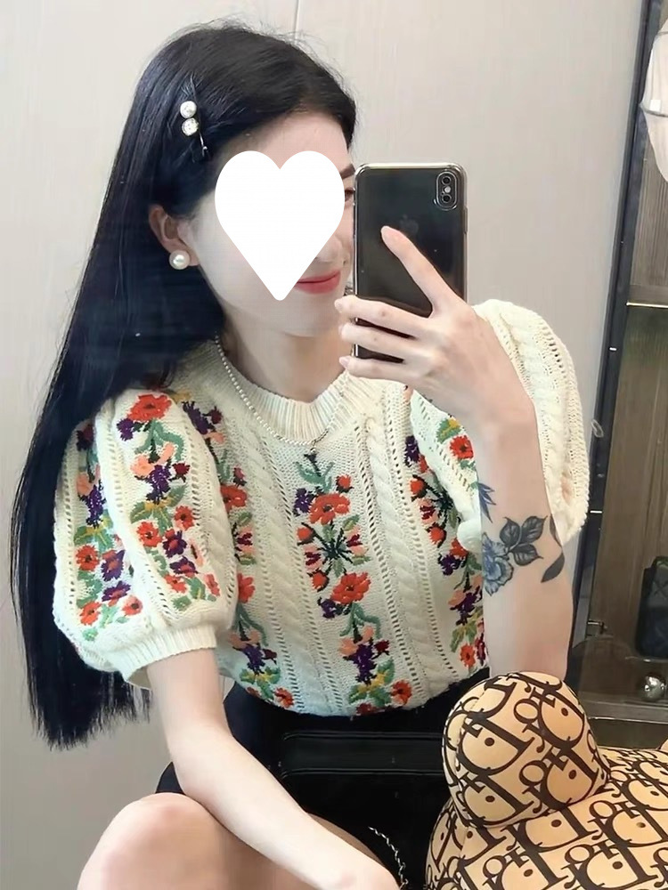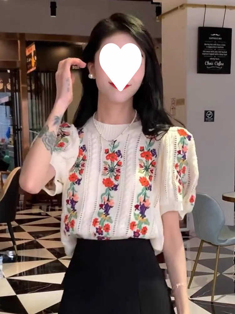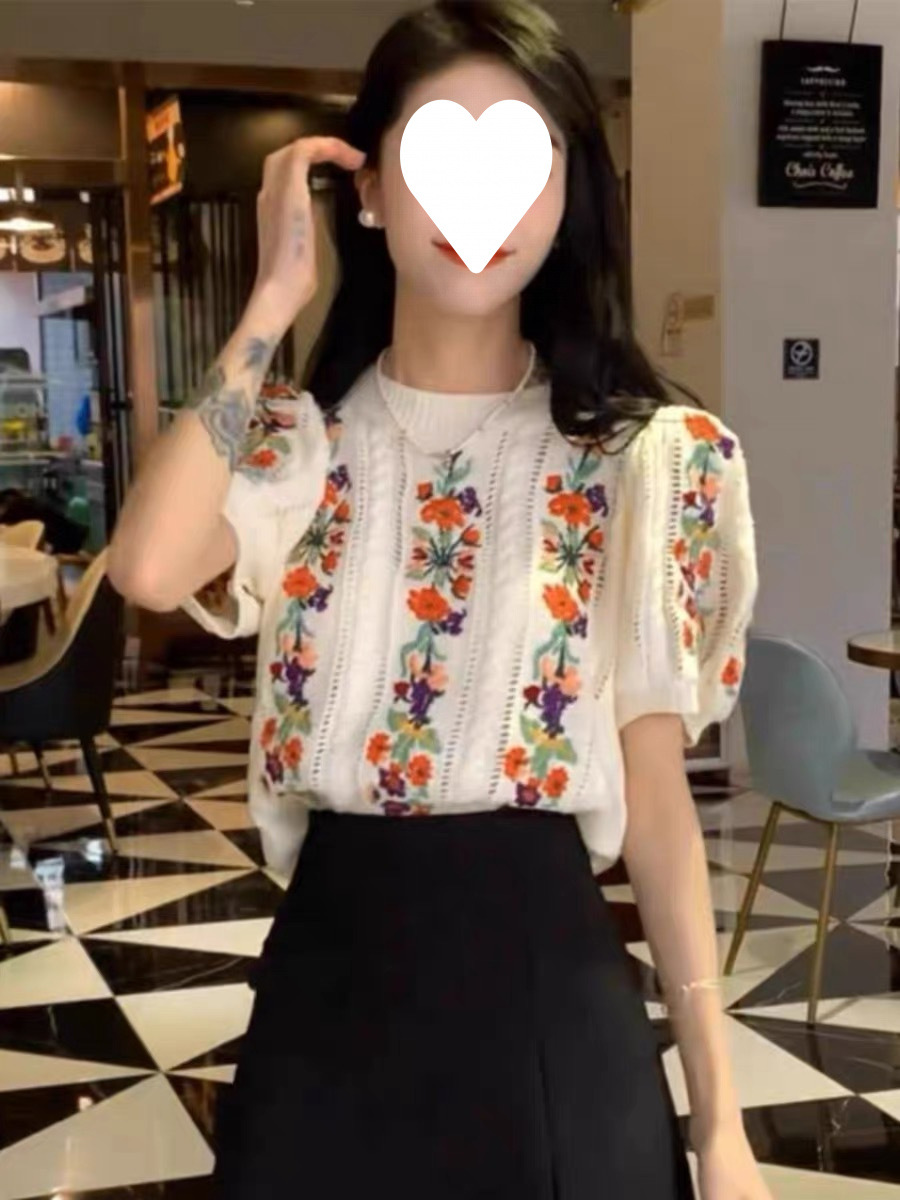 Women's Embroidered Jacquard Short-sleeved Hollow-out Top